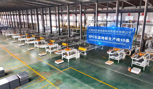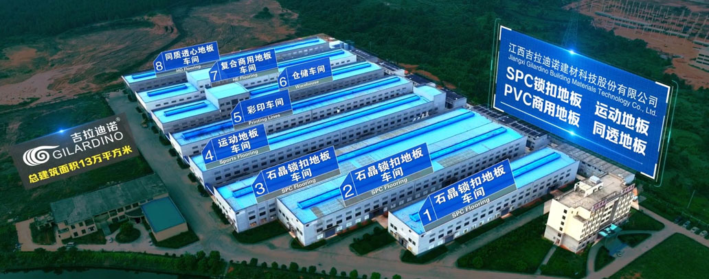 江西吉拉迪諾建材科技股份有限公司,占地面積近300畝,建筑面積13萬(wàn)多平方米,總投資5億元,擁有20余條生產(chǎn)線(xiàn),員工近300人?,F(xiàn)有SPC石晶地板生產(chǎn)線(xiàn)十條、德國(guó)豪邁開(kāi)槽線(xiàn)兩條、大型商用卷材生產(chǎn)線(xiàn)四條、水墨彩印生產(chǎn)線(xiàn)兩條、同透地板生產(chǎn)線(xiàn)兩條,超大型運(yùn)動(dòng)地板生產(chǎn)線(xiàn)一條、是彈性地板行業(yè)產(chǎn)能量大,硬件實(shí)力強(qiáng)的生產(chǎn)廠(chǎng)商之一。